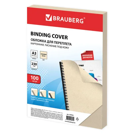 Обложки для переплета картонные Brauberg слоновая кость, А3, 230 г/кв.м, 100шт