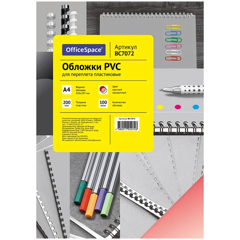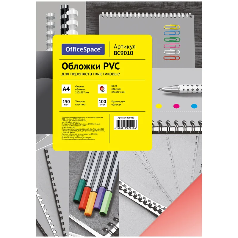 Обложки для переплета пластиковые Officespace PVC прозрачные красные, А4, 150мкм, 100шт