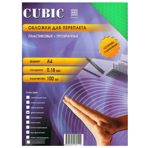 Обложки для переплета пластиковые Office Kit Cubic зеленые, А4, 180 мкм, 100шт, PGKA400180