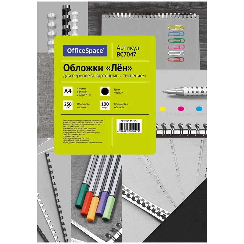 Обложки для переплета картонные Officespace Лен черные, А4, 250г/кв.м, 100шт