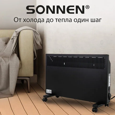 Обогреватель-конвектор SONNEN TEPLO-15, 1500 Вт, Х-образный нагревательный элемент, черный, сделано