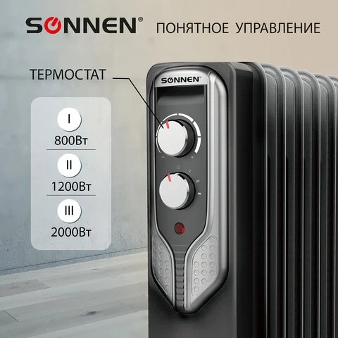 Обогреватель масляный SONNEN DFN-09BL, 2000 Вт, 9 секций, черный, 455311