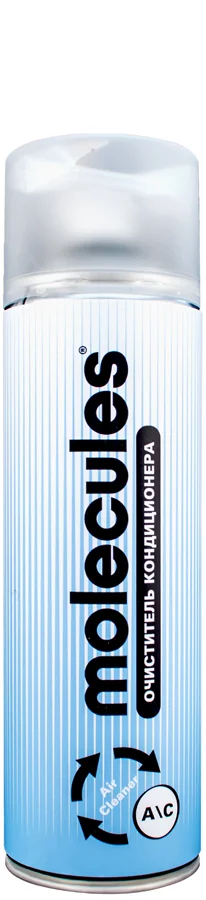 Очиститель кондиционера Molecules Air cleaner, 650мл позволяет легко и эффективно очистить сплит-систему автомобиля. Он быстро удалит все загрязнения, вредные микроорганизмы, неприятные запахи и восстановит свежий чистый воздух. Продукт удобен и прост в применении, так совсем не обязательно разбирать климатизер для проведения процедуры очистки. Вещества, входящие в состав средства, активно взаимодействуют с накопившейся грязью в испарителе кондиционера за время его эксплуатации, обеззараживают систему вентилирования от микробных спор, вирусов и простейших грибков. Это способствует профилактике заболеваний органов дыхания. Препарат образует стойкий антибактериальный защитный слой, предотвращающий появление загрязнения вновь и действует до полугода. Наконечник распылителя образует мелкодисперсную взвесь дезинфицирующего состава, что позволяет провести более глубокую очистку и заполнение всего объема системы кондиционирования.