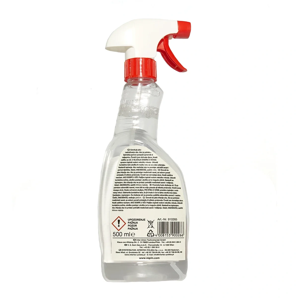 Очиститель Nigrin для стекол, 500 мл – эффективное средство, в основе которого лежит никотиновый растворитель, позволяющее быстро и легко очистить стекла авто как с наружной стороны, так и с внутренней. Помогает эффективно удалить следы от насекомых, жира, силикона, а также разного рода загрязнения и никотиновую пленку. Способствует предотвращению запотевания стекол, что обеспечивает хорошую видимость дороги во время поездки. Средство отличается тем, что обеспечивает мягкий уход, не оставляя разводов. Поверхность, обработанная им, приобретает былой блеск. Состав выпускается в виде спрея в удобной и практичной емкости, оснащенной специальным дозатором, который обеспечивает точечное распыление и экономичный расход. Nigrin – торговая марка с традициями, которая по??вилась в далеком 1896 г. Сегодня под этим брендом на отечественный рынок поставляется немецкая автокосметика и автохимия, которая показала себя с лучшей стороны, что и обусловило ее популярность среди автовладельцев. Продукция компании – это сочетание высокого качества и инноваций в области ухода за ТС. В основе продукции лежат супертонкие частицы воска, обеспечивающую защиту и блеск.