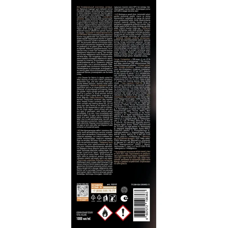 Очиститель обивки салона Grass Multipurpose Foam Cleaner 1л, аэрозоль