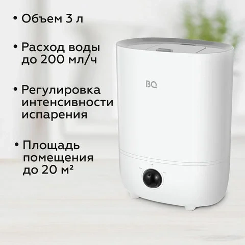 Увлажнитель воздуха BQ (БИ-КЬЮ) HDR2000, объем бака 2,5 л, 25 Вт, белый/черный, 86196446