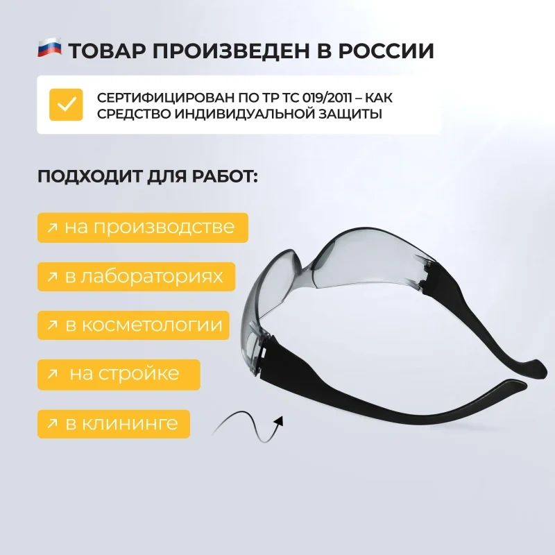 Очки предназначены для работы в строительстве, производстве, лабораториях, а также для токарных работ и использования с болгаркой. Сроки эксплуатации зависят от условий применения.