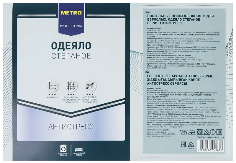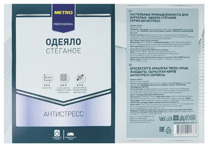 METRO PROFESSIONAL Одеяло полиэстер 100% серия антистресс, 200 x 220см