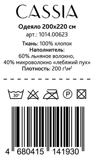 Одеяло Cassia альпийский лен и хлопок, 200 x 220см