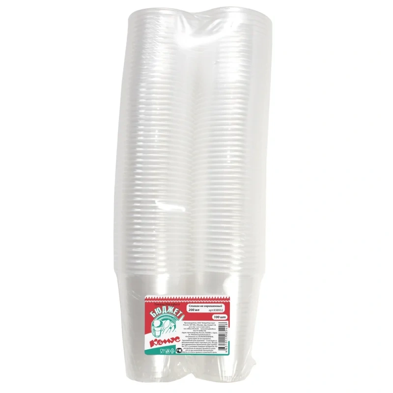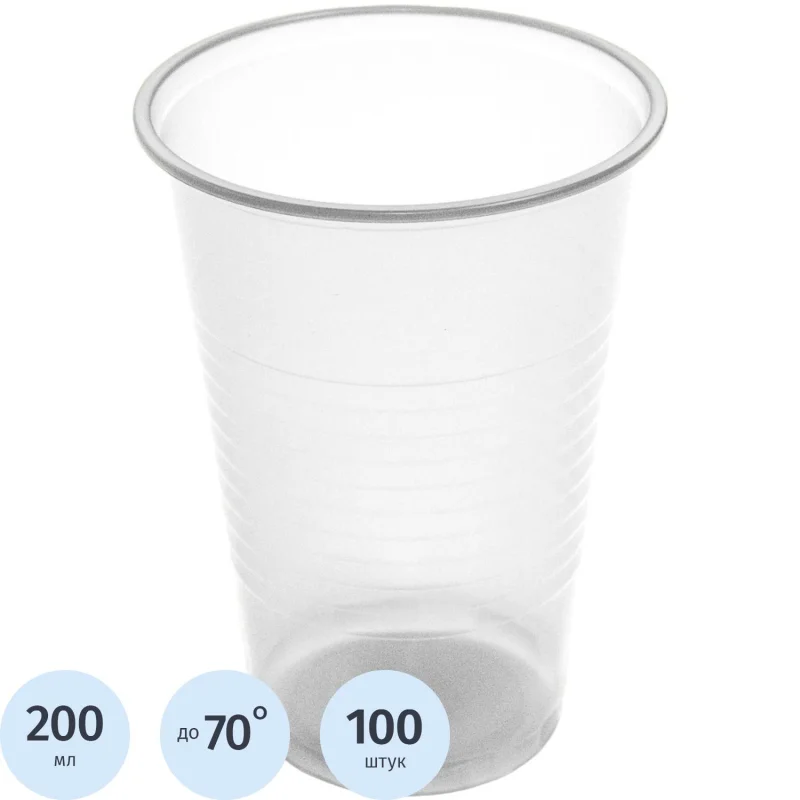 Стакан одноразовый Д-Полимер Эконом 200мл, пластиковый прозрачный, 100шт/уп