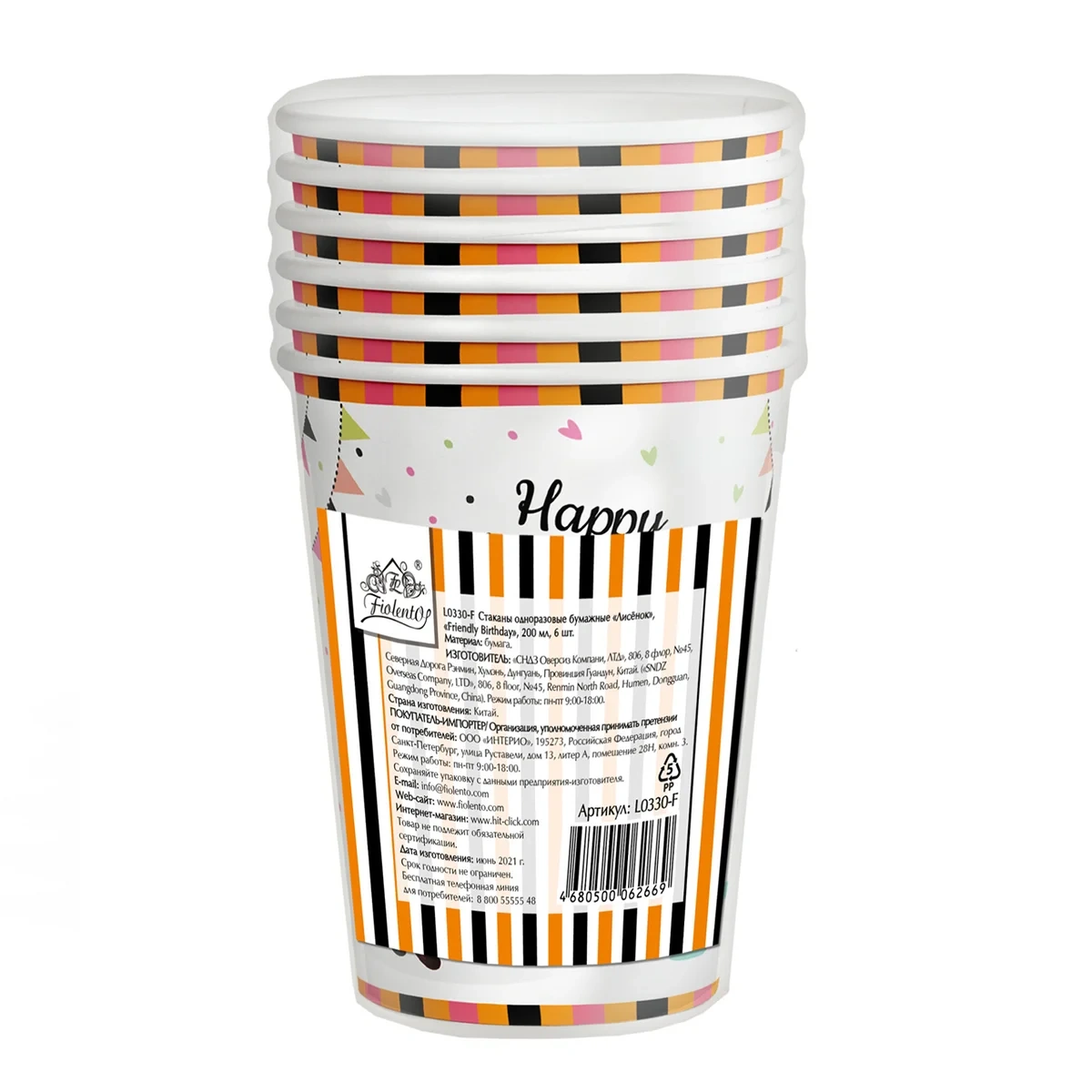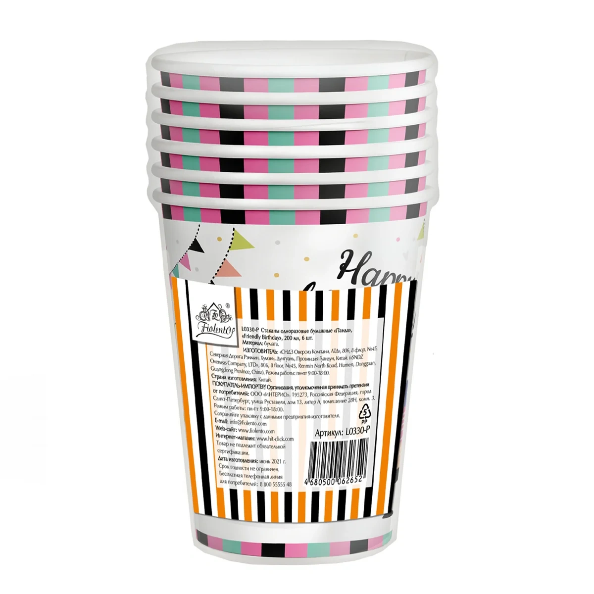 Стакан одноразовый Fiolento Веселая вечеринка бумажный разноцветный 200мл, 6шт