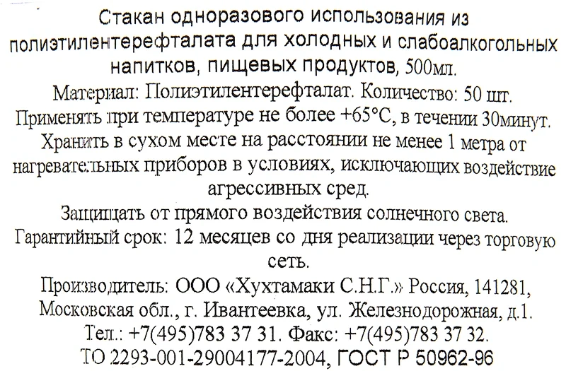 Стакан одноразовый Huhtamaki Light пластиковый прозрачный 500мл, 50шт