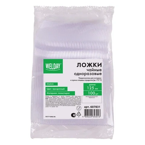 Ложка одноразовая чайная Белый Аист эталон прозрачная, 12.5см, 100шт/уп