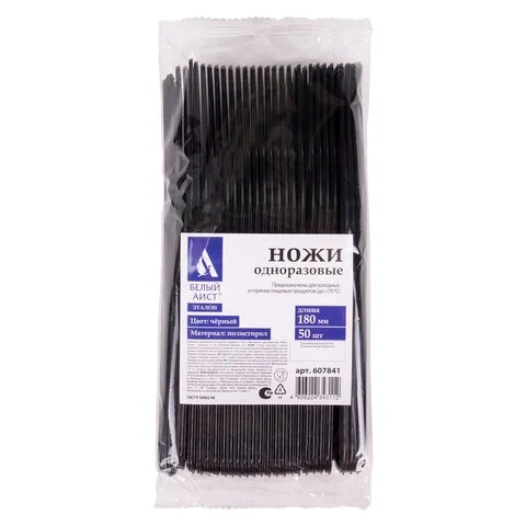 Нож одноразовый Белый Аист черный, 18см, 50шт/уп