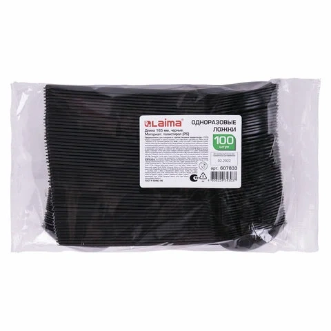 Ложка одноразовая столовая Laima черная, 16.5см, 100шт/уп