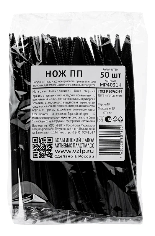 Нож одноразовый Vzlp пластиковый черный, 50шт