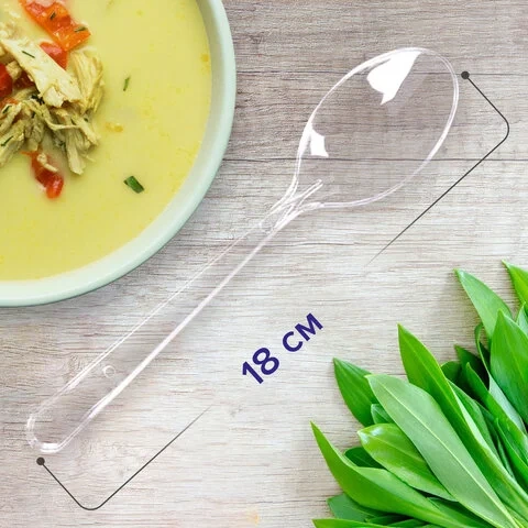 Ложка одноразовая столовая Белый Аист прозрачная, 18см, 50шт/уп