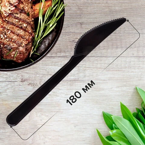 Нож одноразовый П Полимер Кристалл черный, 18см, 50шт/уп