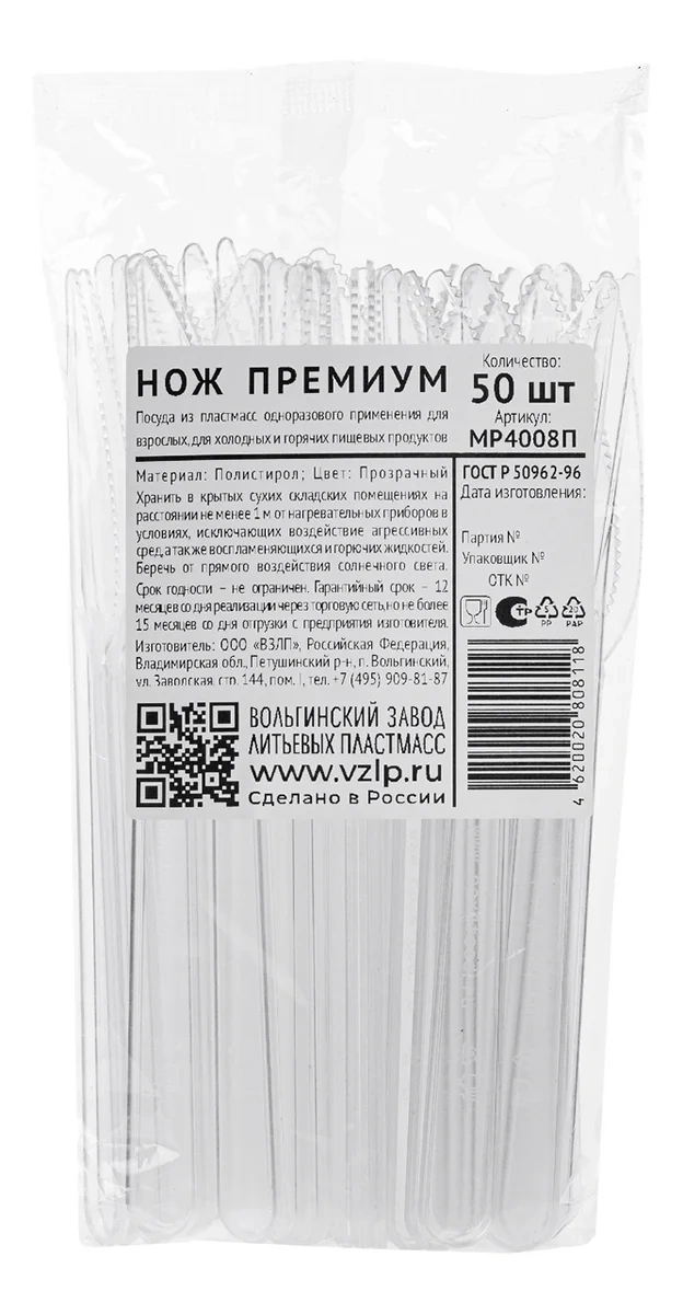 Нож одноразовый Vzlp Премиум пластиковый прозрачный, 50шт
