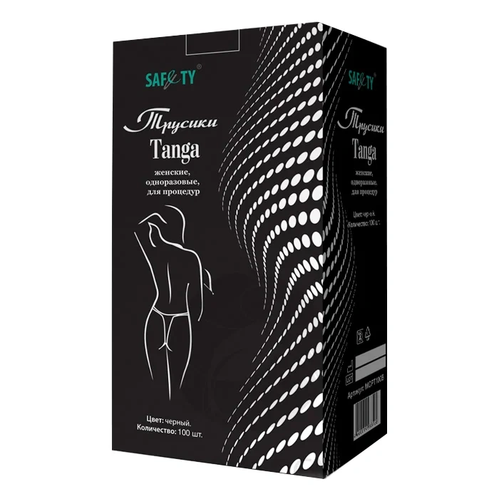 Одноразовые трусы Safety Tanga женские, черные, нетканые,спанбонд, 100шт