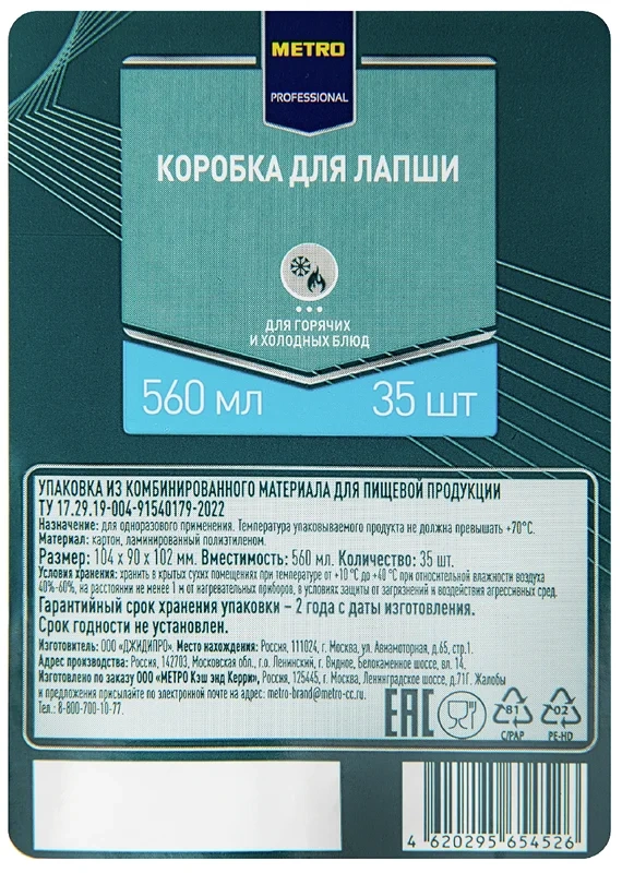 Коробка для лапши Metro Professional крафт и картон, 35шт