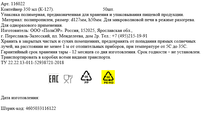 Контейнер пластиковый черный 12.7 x 5см, 350мл х 50шт