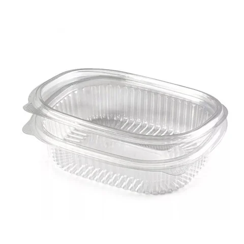 Контейнеры с рёбрами жёсткости по углам и неразъёмной крышкой. Надёжное штабелирование. Изготовлены из пищевого пластика. Крышка плотно и крепко облегает пищевой контейнер, что снижает вероятность контакта продуктов с внешней средой. Разогрев в микроволновке не допускается.