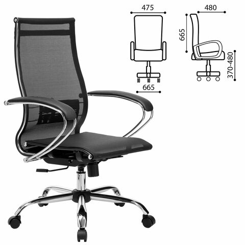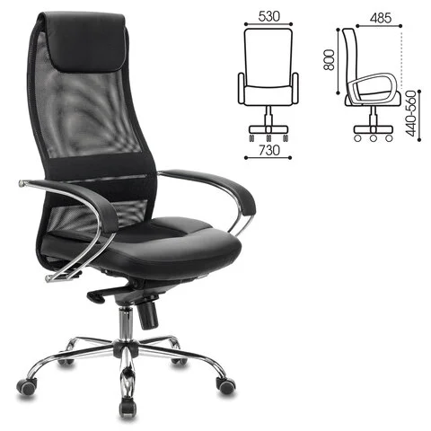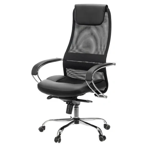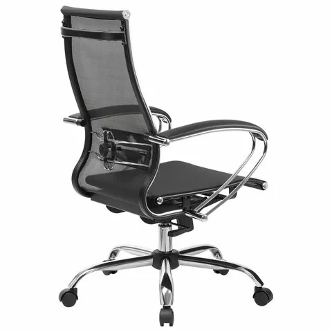 Кресло руководителя Метта, прочная сетка, черная, крестовина хром