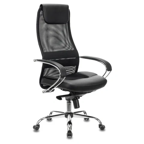 Кресло руководителя Brabix Stalker EX-609 Pro экокожа, ткань-сетка, черная, крестовина хром