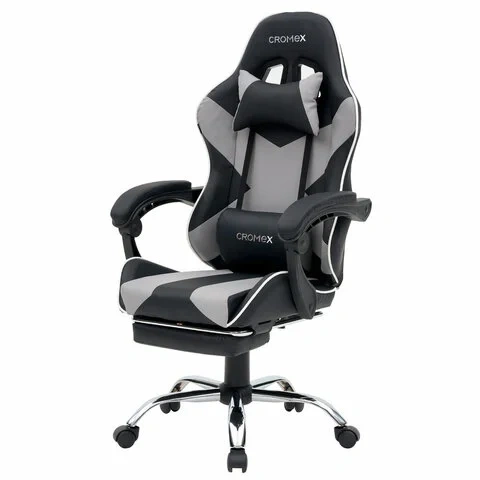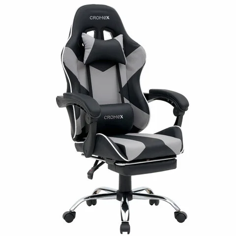 Кресло компьютерное CROMEX (КРОМЕКС) 'Wave GM-145', вибромассаж, подножка, подушки, экокожа, черное/