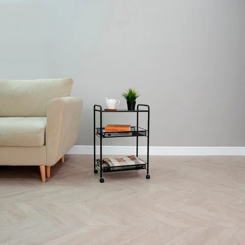 Этажерка офисно-бытовая 'Ладья-33КС', 650х450х300 мм, 2 яруса + столик, металл, черная, Э 356 Ч