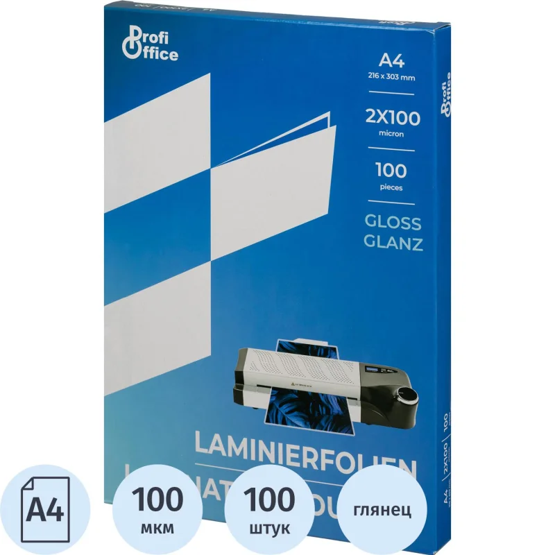 Пленка для ламинирования Profioffice 100мкм, 100шт, 303x216 мм, глянцевая