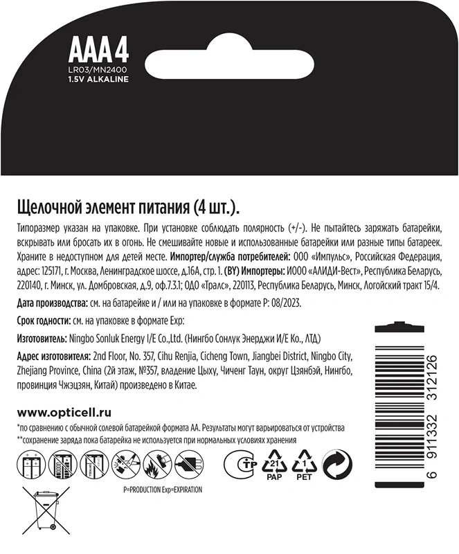 Батарейка Smartbuy AAA LR03, 1.5Вт, солевые, 4шт/уп