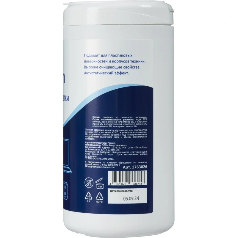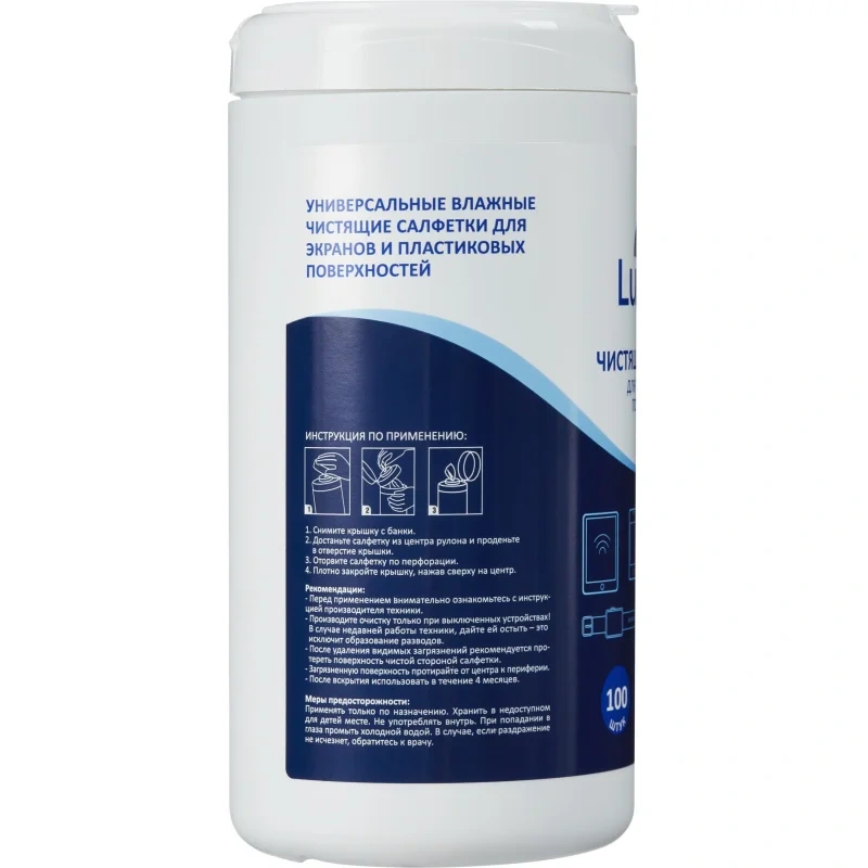 Салфетки чистящие для мониторов Luscan в тубе, 100 шт