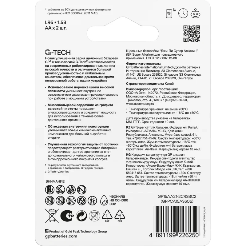 Батарейка Gp Super AA LR6, 1.5В, алкалиновые, 2шт/уп