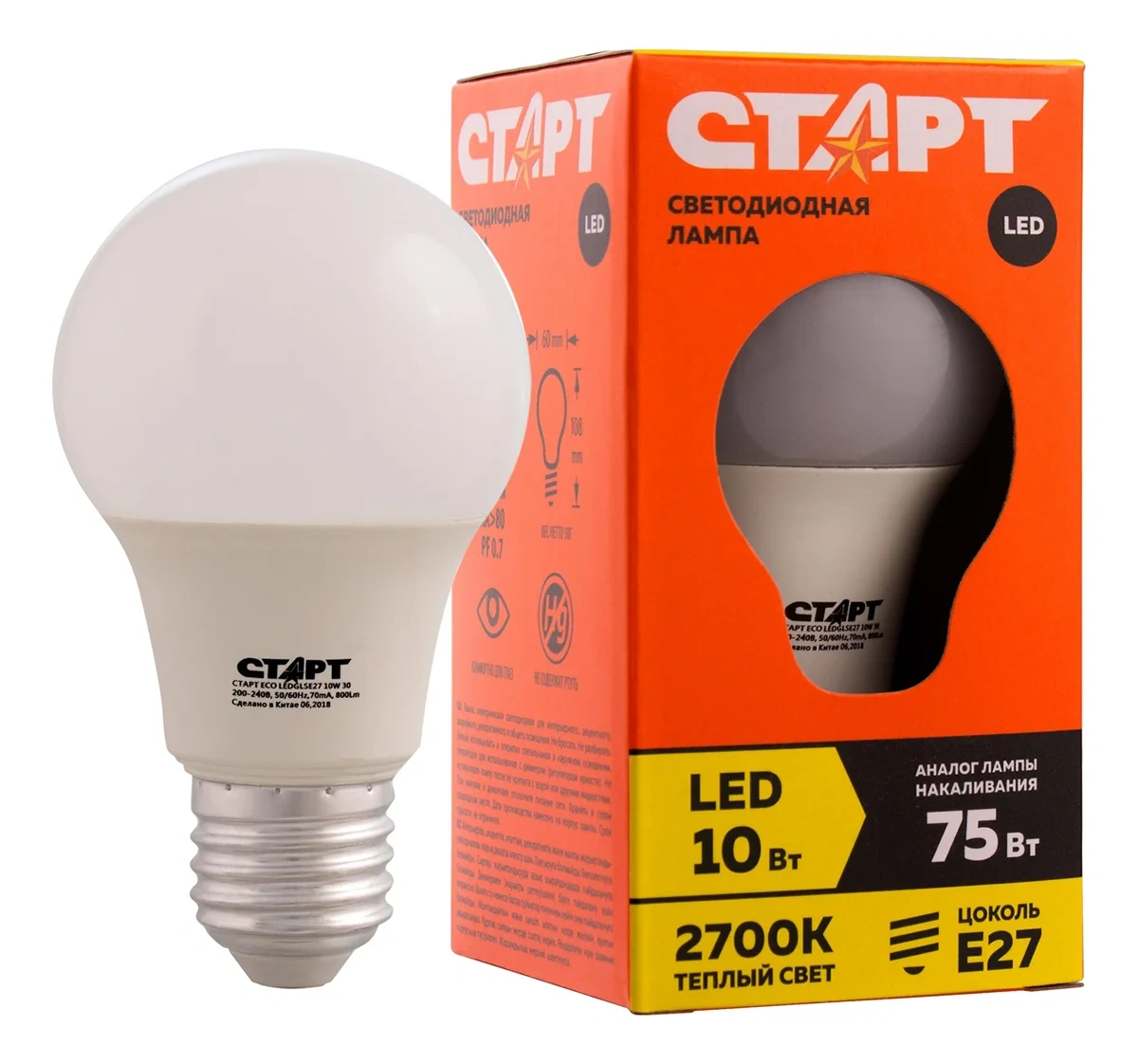 Лампа светодиодная Старт Eco Е27 GLS 30 Led 10Вт