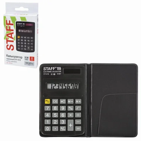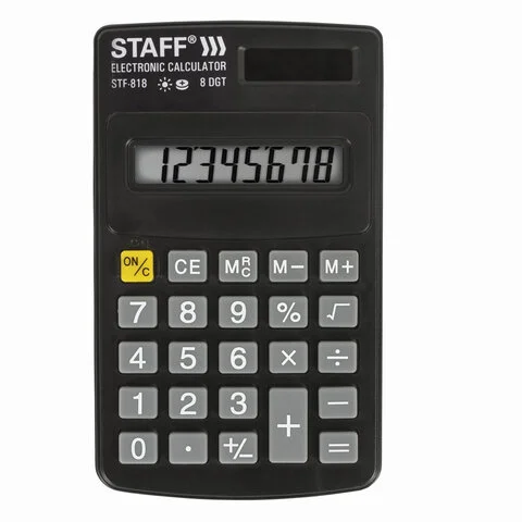 Калькулятор карманный Staff STF-818 черный, 8 разрядов