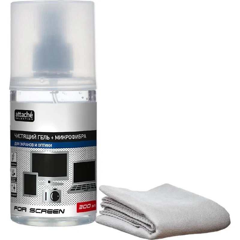 Набор для чистки экранов Attache гель-очиститель, 200мл, салфетка