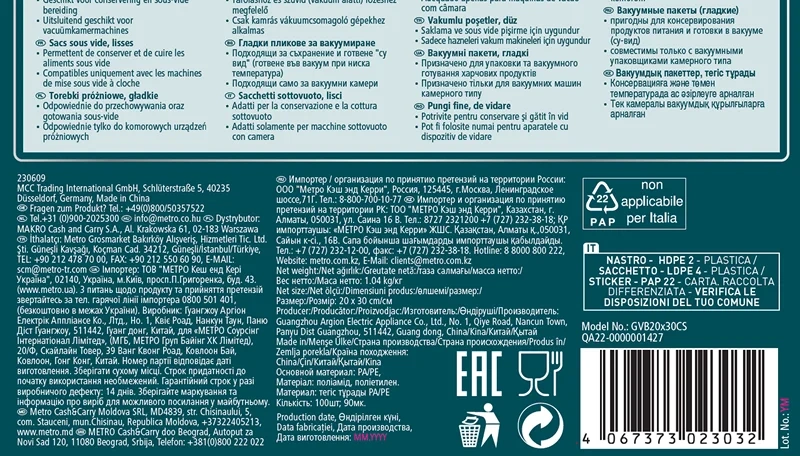 Пакет для вакуумной упаковки Metro Professional 20х30см, 100шт/уп