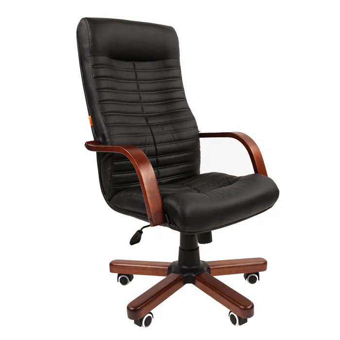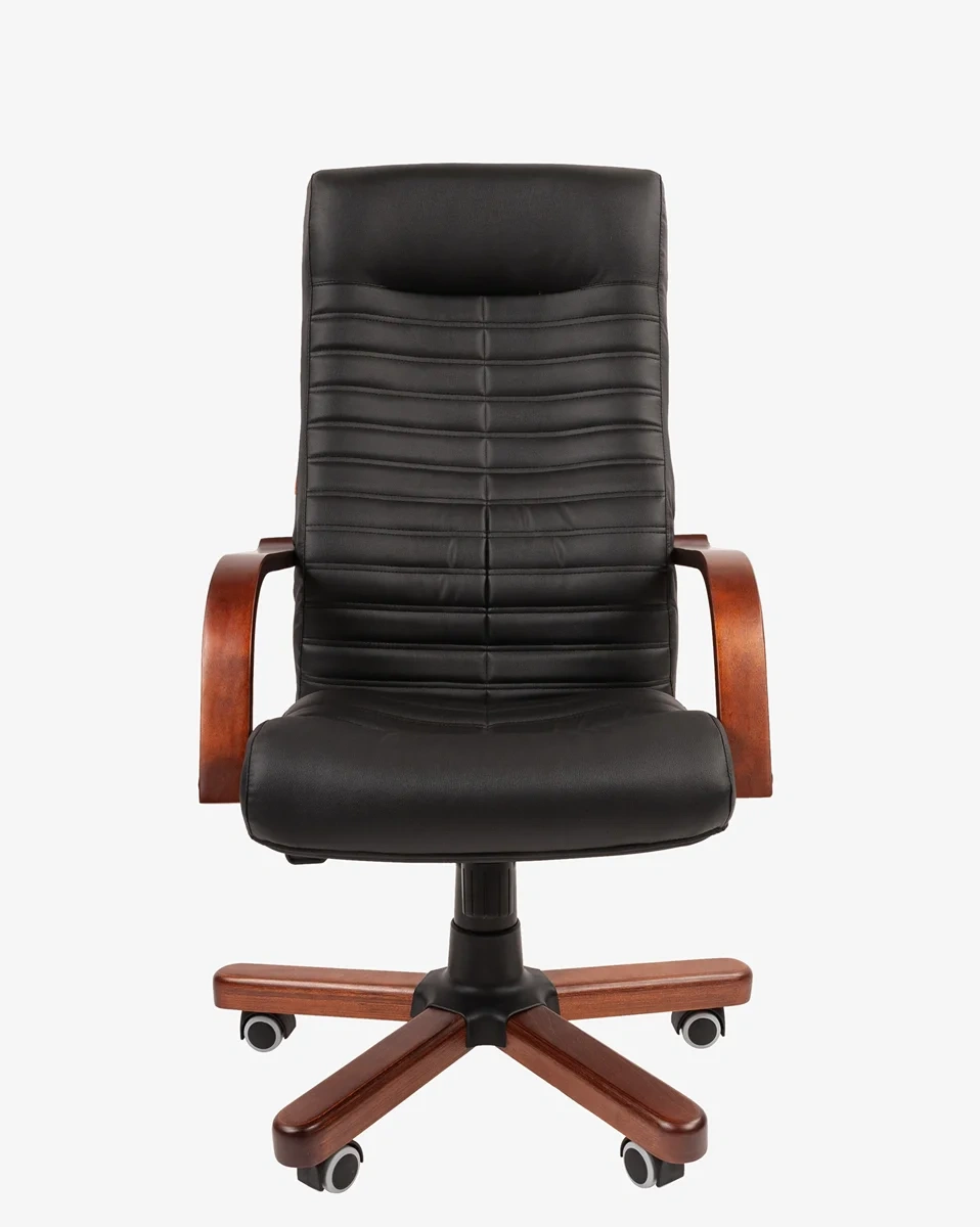 Оригинальное кресло руководителя, дополненное классическими деревянными элементами. Современный геометрический рисунок на спинке создает запоминающийся образ, а эргономичные формы - гарантируют удобство использования.