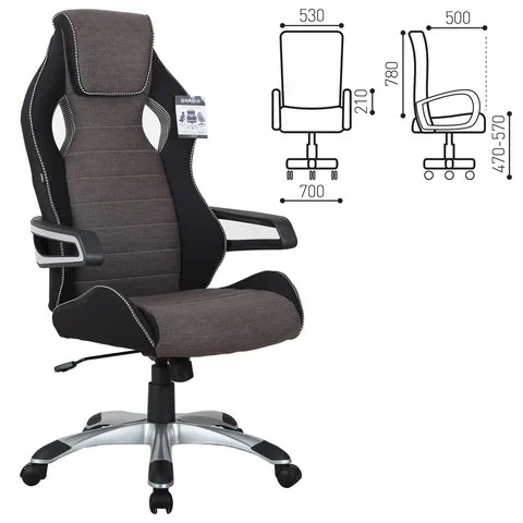 Кресло геймера Brabix GT Racer GM-100 ткань, черно-коричневая, две подушки, крестовина пластик