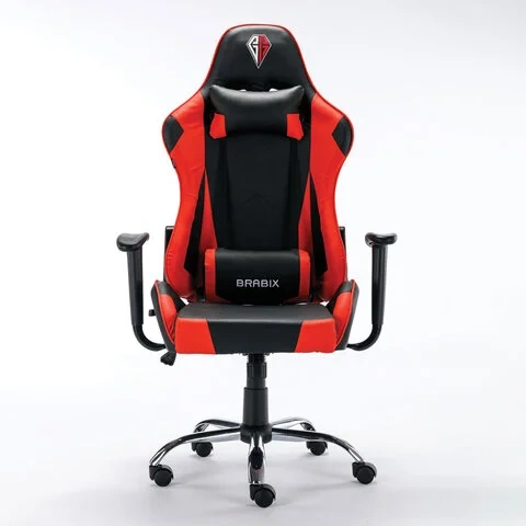 Кресло компьютерное BRABIX 'Hunter GM-130', две подушки, экокожа, черное/красное, 532797