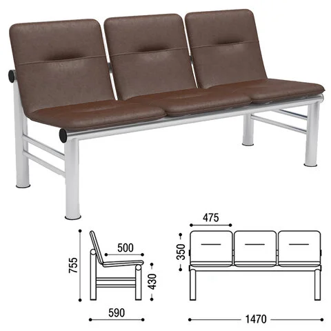 Стул посетителя Троя иск. кожа, коричневая, на ножках, трехсекционный