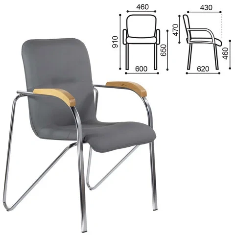 Стул посетителя Brabix Samba CF-104 кожзам, серая, серый каркас
