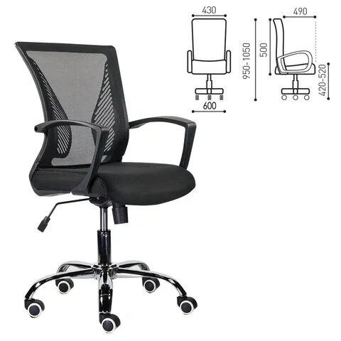 Кресло офисное Brabix Wings MG-304 ткань-сетка, черная, крестовина хром