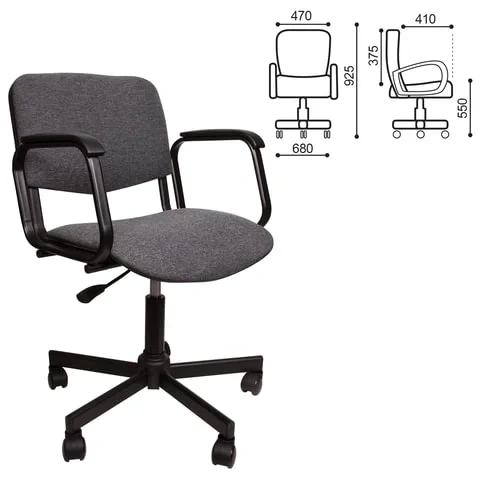 Кресло офисное КР09 ткань, серая, крестовина черный металл