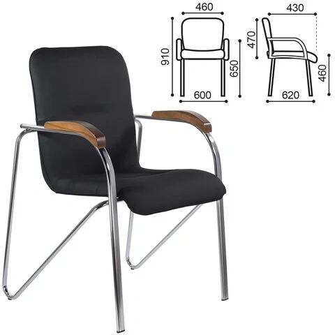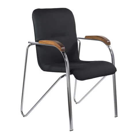 Кресло BRABIX 'Samba CF-103', хром каркас, накладки 'орех', кожзам черный, собрано, 532756