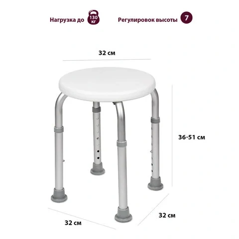Стул-сиденье круглый ТИТАН для купания в душе / ванной, регулировка высоты ножек под любой рост, BRA