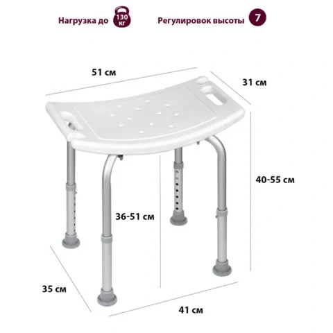 Стул сиденье прямоугольный ТИТАН для купания в душе / ванной, регулировка высоты ножек под любой рос