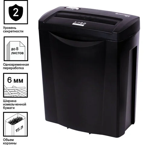Офисный шредер Brauberg S8-S, 8 листов, 15 литров, 2 уровень секретности